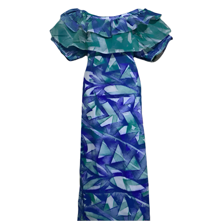 Our Fele dress is a unique and versatile option. Made with stretchable fabric, it features a round-ruffle neckline and an off-shoulder design that falls just below the knee.